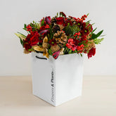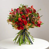 If a traditional Christmas display is what you have been searching for, you can look no further. The Festive Days bouquet embodies the essence of the festive period, featuring ilex, pinecones, gold skimmia and fresh red roses.