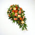 Roses, Chrysanthemums, Carnations, Hypericum, Dracaena, Aralia, Cocculus, Salal, and Cherry Blossom.